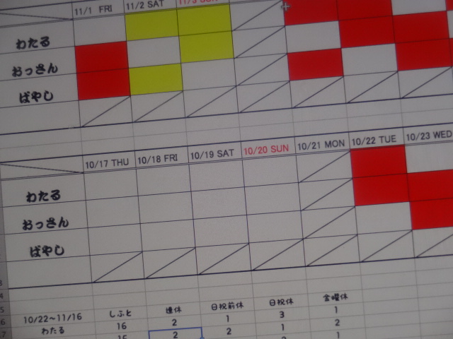 昨日はこんなシフト表