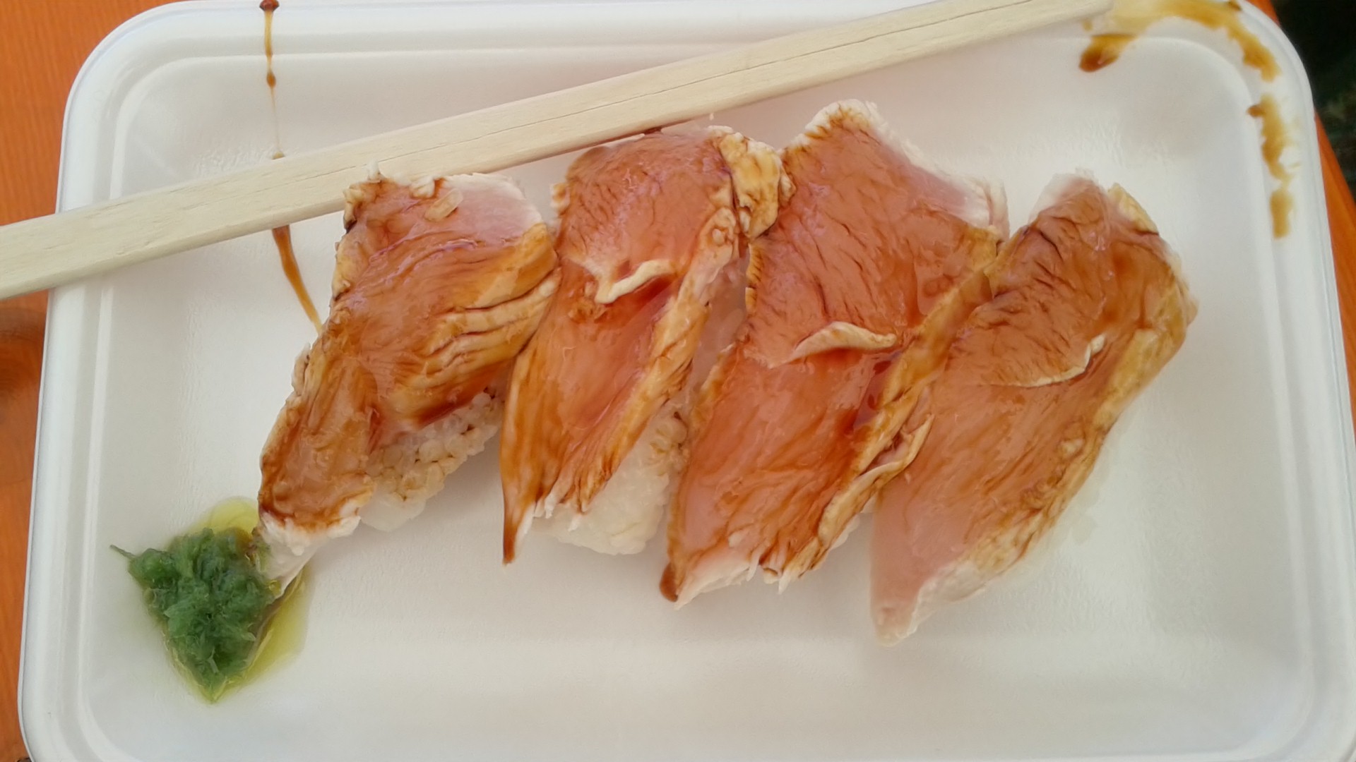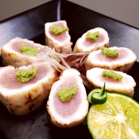 要はささみの表面だけ火を入れて中は生の状態で、わさび醤油で食うってヤツっす。