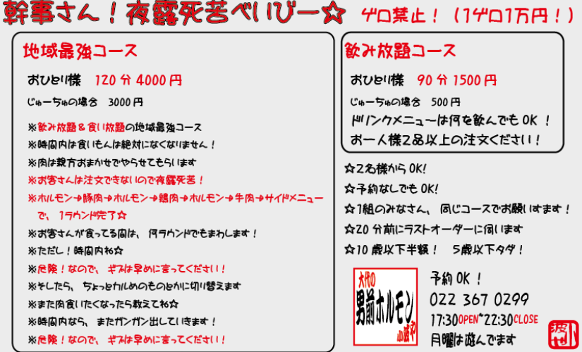 小波やの場合、焼肉キ◯グさんや牛◯さんと違い